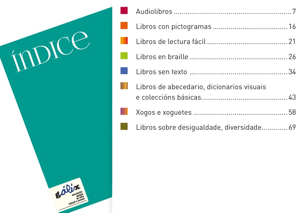 Apartado no que se ofrece un listado de libros-xogo, xoguetes e xogos (de mesa, de linguaxe, de construcións, de lóxica…) co que intentamos dar a coñecer o que o mercado ofrece en galego para aqueles e aquelas con diferentes graos de competencia e desenvolvemento, sen esquecer aqueles libros con texturas, ruídos, arrecendos.
